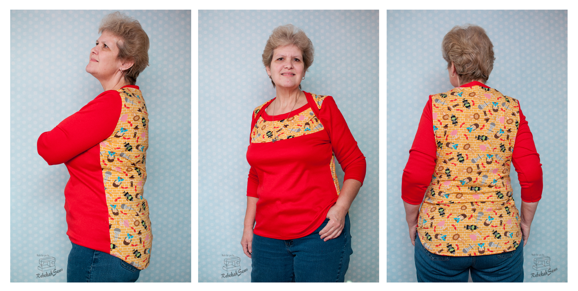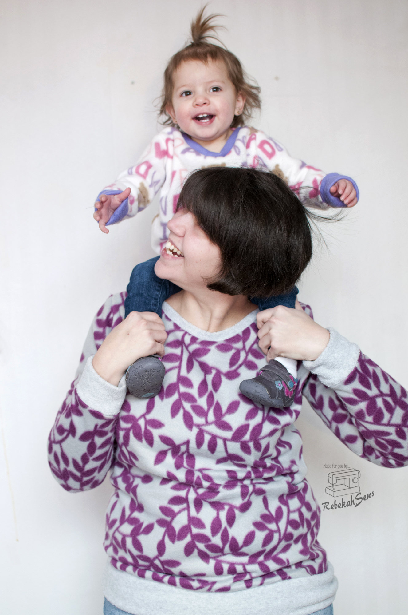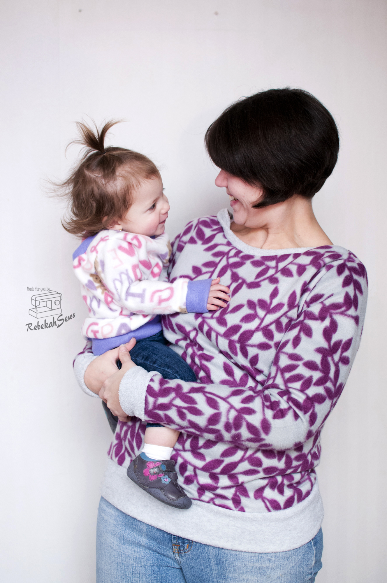 RTC_0335For this tour I not only had the pleasure of making another shirt for my baby girl but also to do a little self care sewing for myself! First let’s take a look at baby girls top. For hers I made the size 12mo with the low bow back. The fit is great. Nice and relaxing. For my top I also made the low bow back but I was able to fit it so it fits me perfectly.RTC_0432 Annemieke knows all women are beautiful in all different shapes and sizes. In the pattern it shows how to fit the top to fit all of our more curvy areas where ever they may be. Using her instructions I was able to make my top to fit my size M bust with my size L hips. The fit is perfect!! I used fleece on both tops and it worked out beautifully. I was even able to use it for the collar with just a little extra length added to the collar measurement per the suggestion from the tutorial as well! This pattern really sets you up for success!