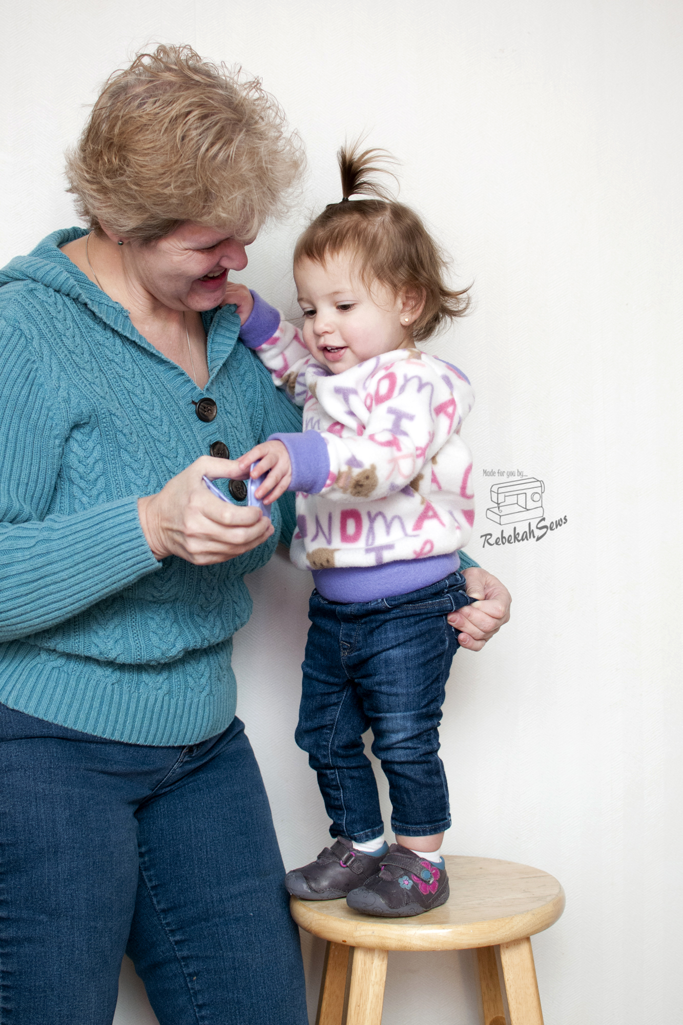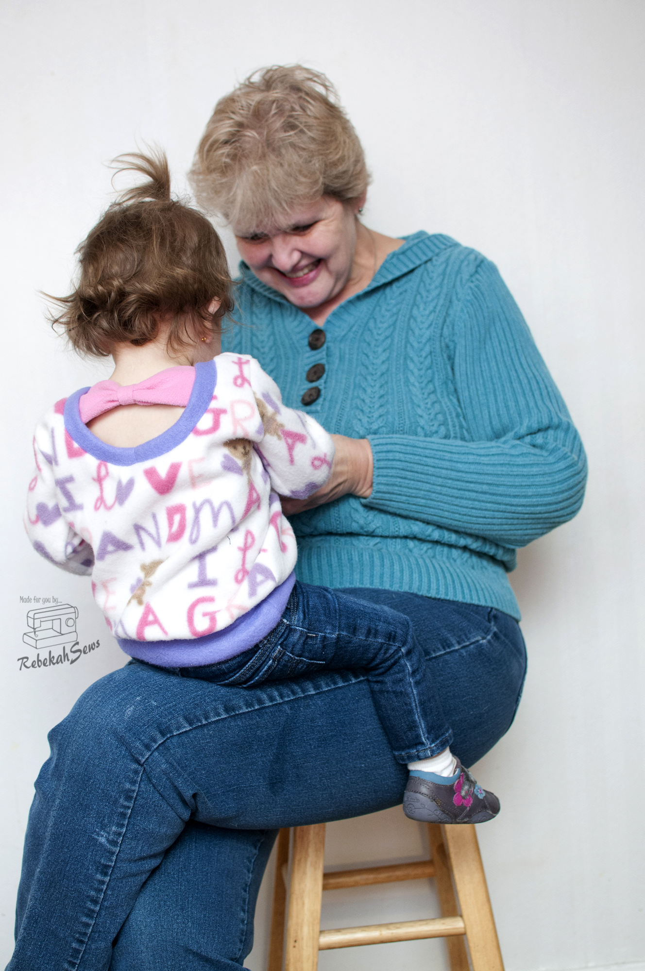 You may not be able to see, but baby’s girls fabric says “I love Grandma”.  Perfect opportunity to take some cute pics of her and Grammy!!
