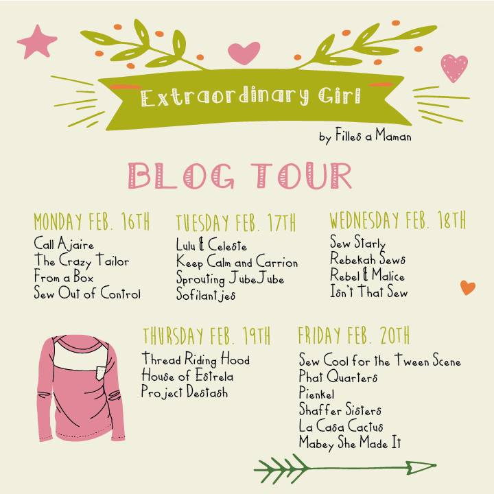 How many of you have patterns that you want to sew but just haven’t gotten around to? Or perhaps you need a deadline or some other motivation to actually get you sewing? Yes, I am one of those too!! I will procrastinate till the bitter end if you let me! So, what better motivation to sew a pattern I have been wanting to sew than to participate in a blog tour? Today we are on tour with the Filles a Maman Extraordinary Girl. Honestly, I don’t know why I waited so long to make this! Keep reading and you will find out why!