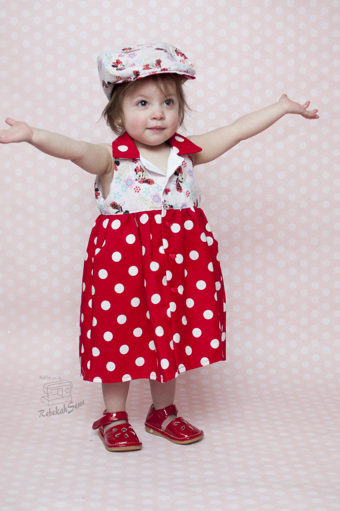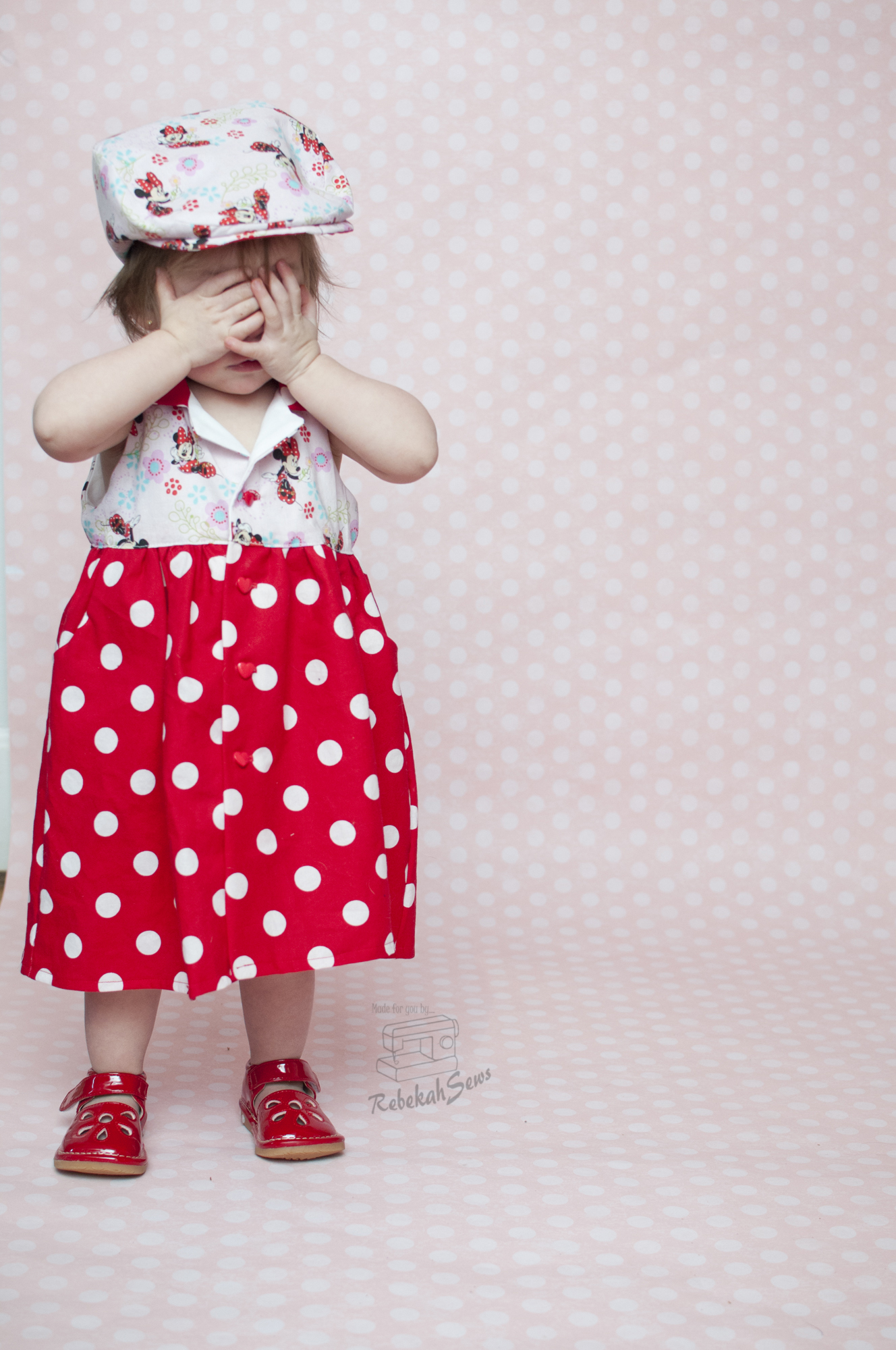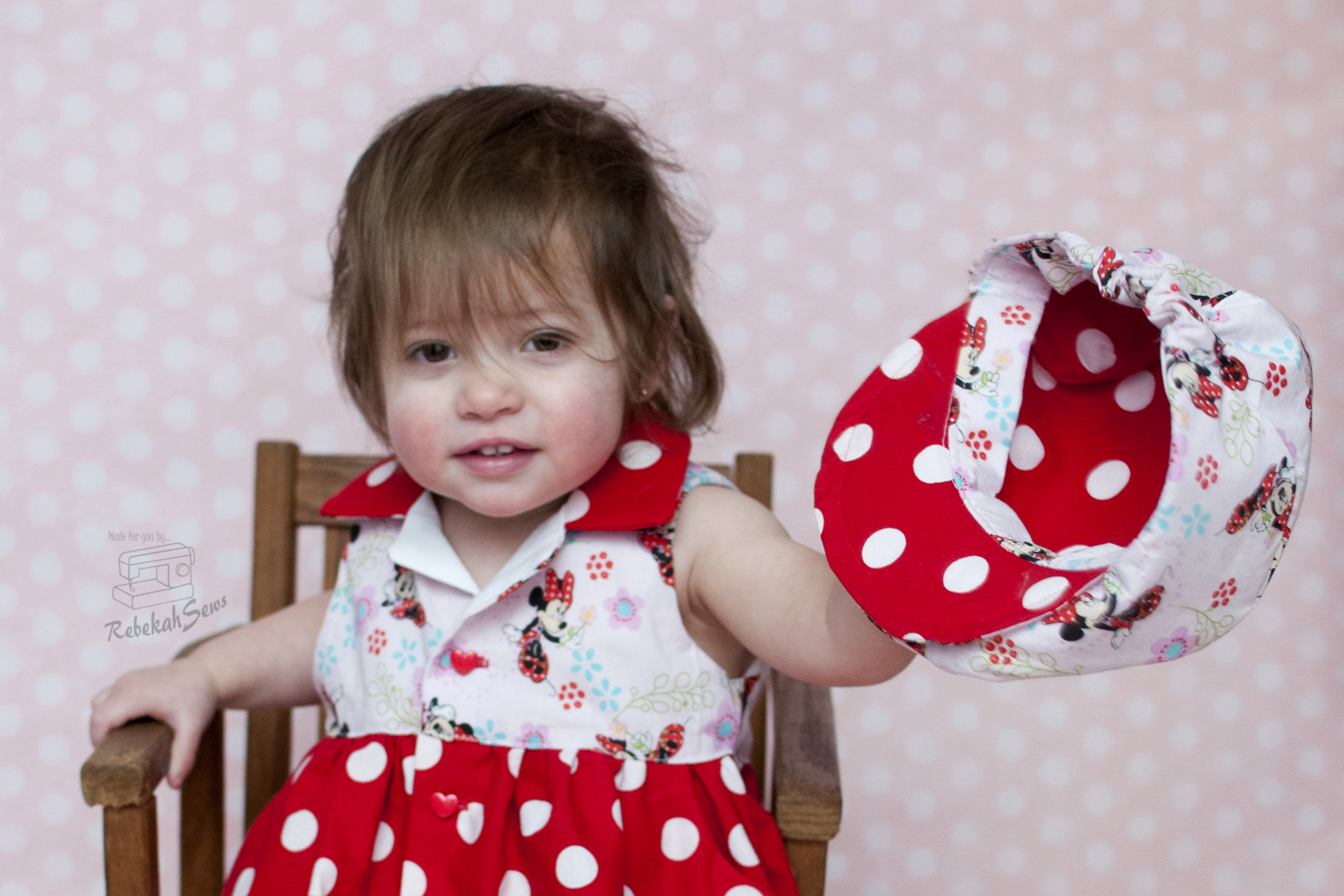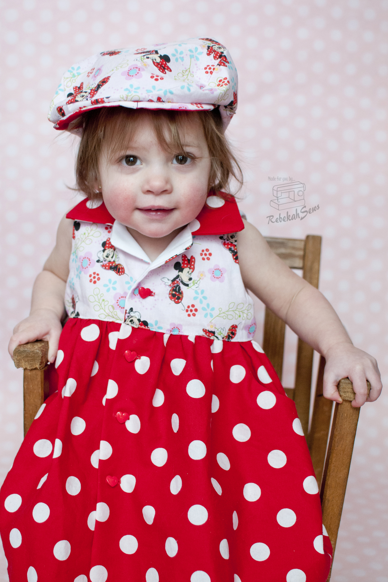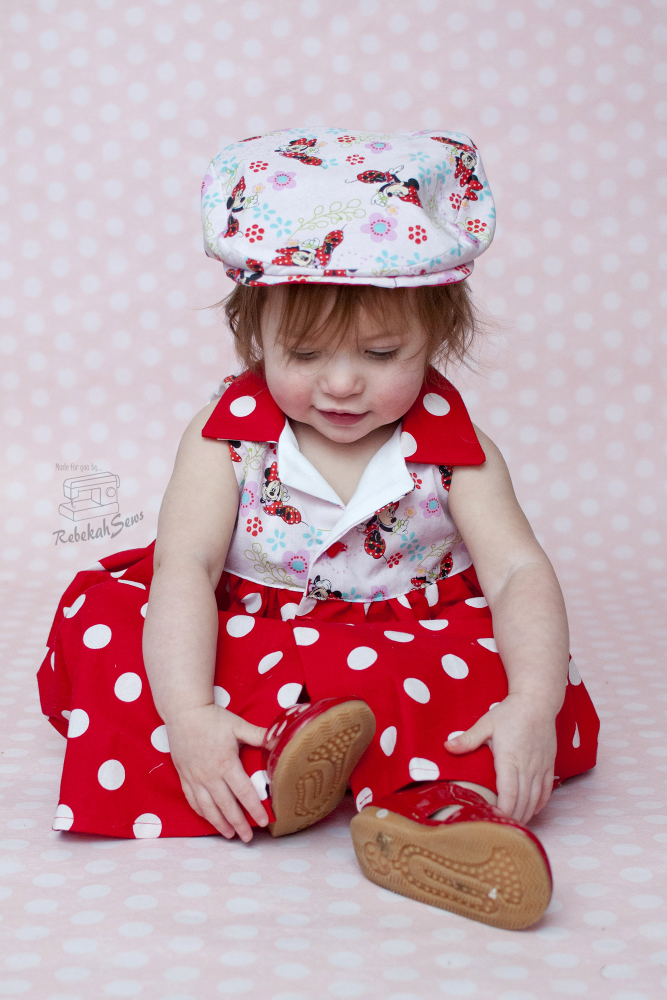 To complete baby girl’s Minnie inspired outfit I created the Gatsby cap. RTC_2796I have been looking for a pattern that gave that Newsboys look for awhile but didn’t find any that caught my attention. Until now that is! I was quite surprised at how easy this was too! This ranges in size from XXS-XXL (babies to adults) so you can use this one for the whole family! The younger sizes give the option for an elastic brim in back to help fit on those growing heads. RTC_2770There is also a sweatband on the inside for added comfort. Now this pattern was designed for outerwear fabrics, but I decided to give it a go in quilting cotton. Baby girl needed a cap to match her dress after all! It worked out beautifully! RTC_2744Seriously, I can’t handle the cuteness I helped create! I would say this is an intermediate pattern as well due to easing and sewing curves. They can be a little difficult sometimes to get those perfect without puckering (something I’m still working on!).