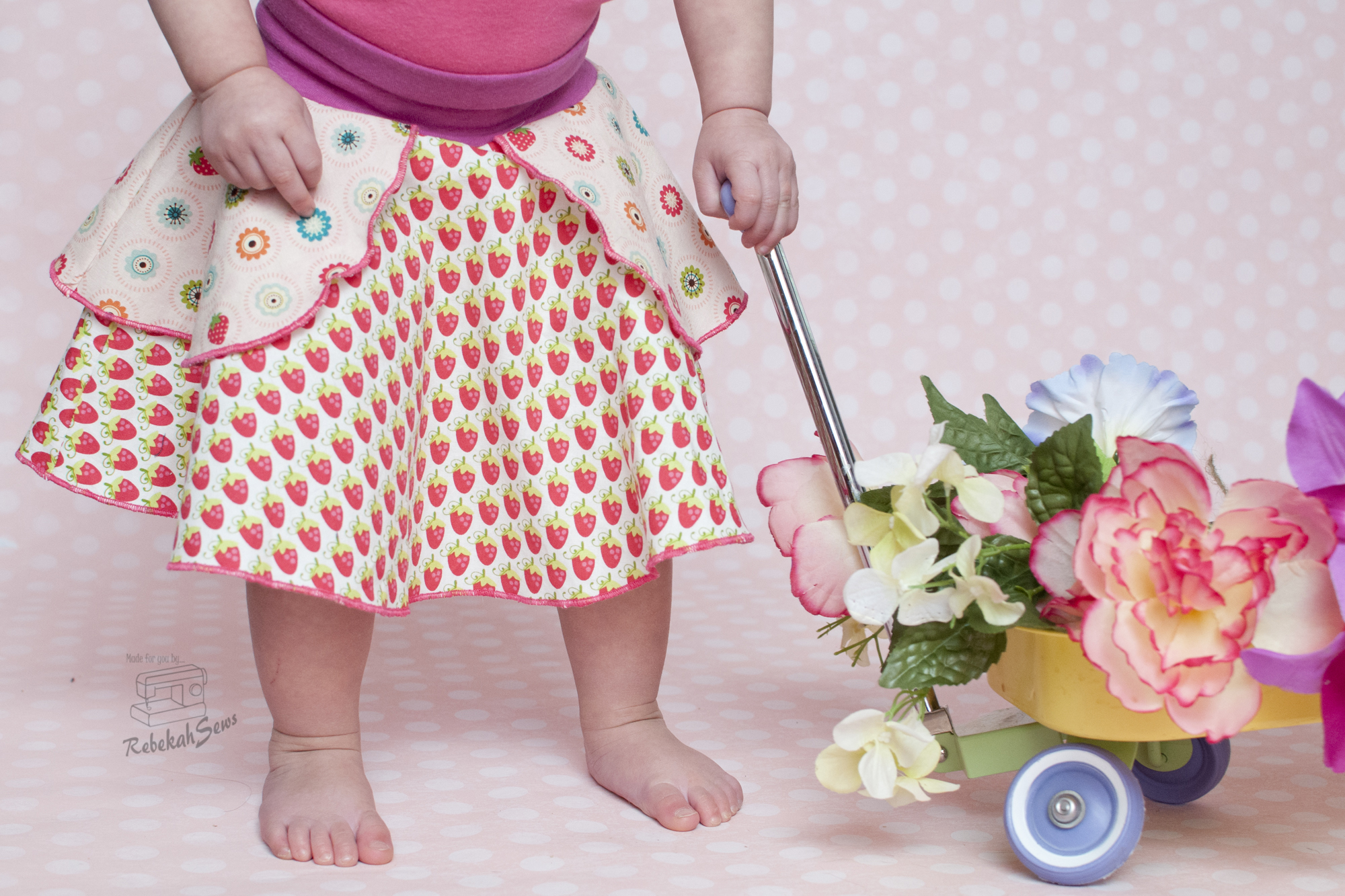 RTC_4704Today we are looking at the Gemini Skirt bundle that was just released! I was lucky enough to test this one. Let me tell you that this is now one of my favorite skirt patterns. There are two skirts in this bundle. One for the sporty type and one for the girly type! The sporty one features a kangaroo pocket and is more fitted. The girly one is a double circle skirt for twirling fun! Both come in sizes NB-12y. This is a very easy pattern and perfect for a beginner. The instructions are very clear with illustrations and you can even print just the size you need with the layer option!! Oh, did I mention how fast this is to sew? Super fast!!