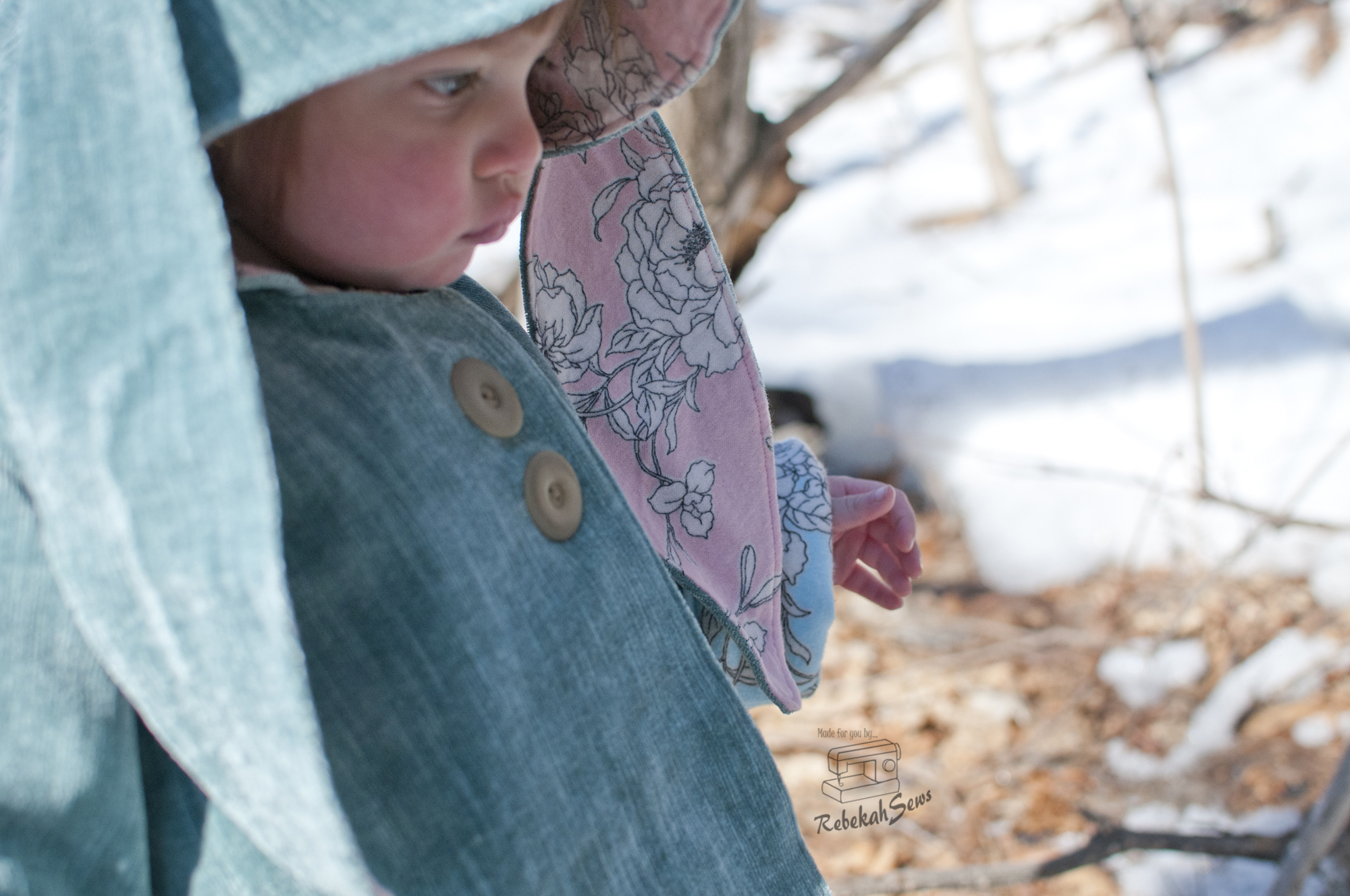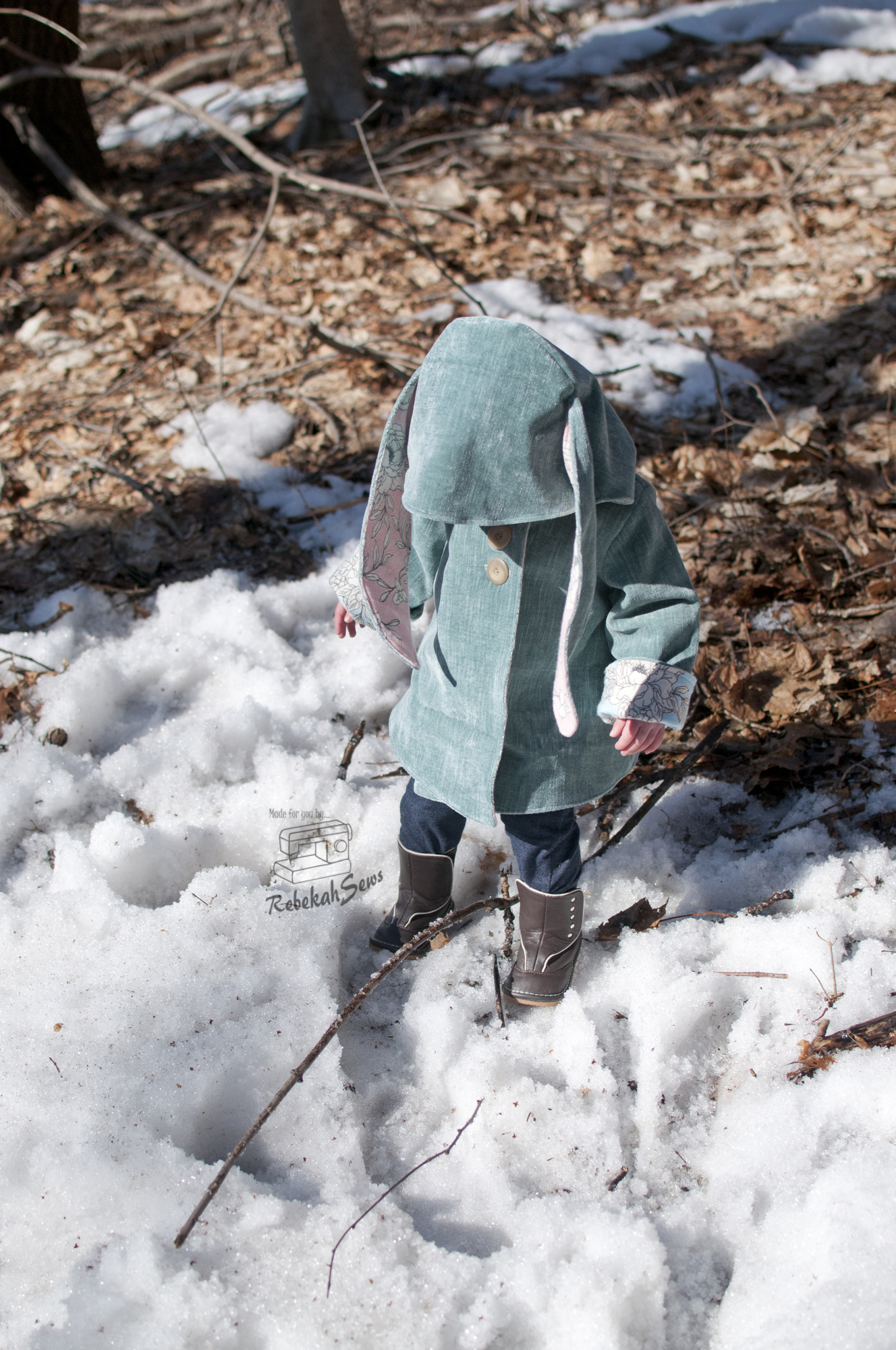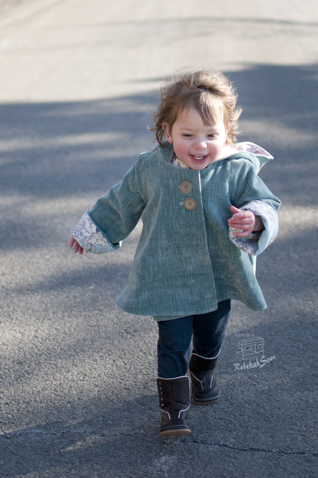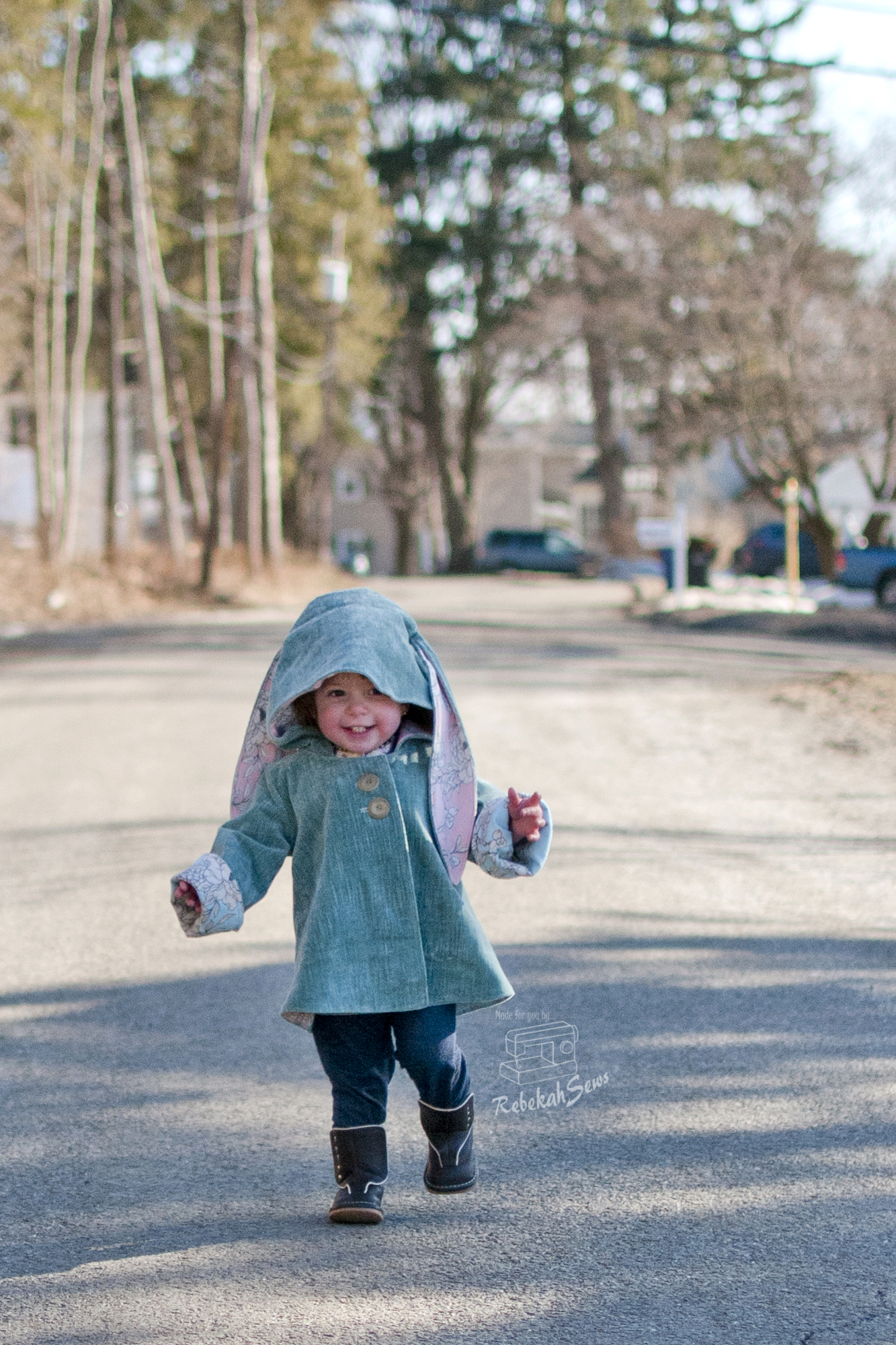 RTC_6086For my coat I sized up and made a size 18mo to make sure this would last through not only the spring but also the fall for my little peanut. I choose a heavy weight material for my main fabric and a flannel for my lining. Now my main fabric is nice and fuzzy. Feels like velour but has weight to it. I think it’s actually upholstery fabric! I don’t really know as I got it at a tag sale last summer. I just love how this turned out! I see more of these in my future once she outgrows this one. I wonder how I could turn it into a horse… I will have to think on that!