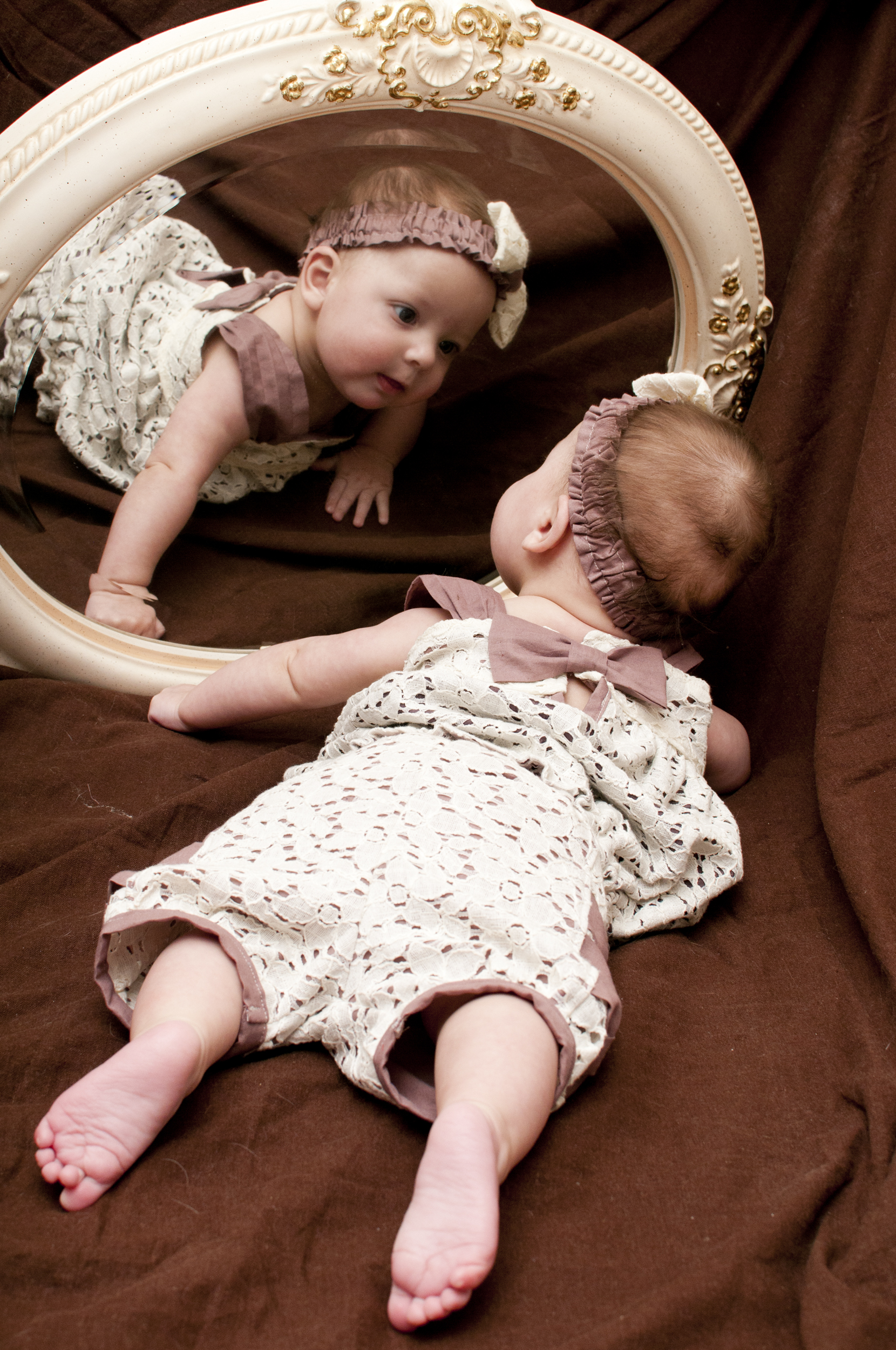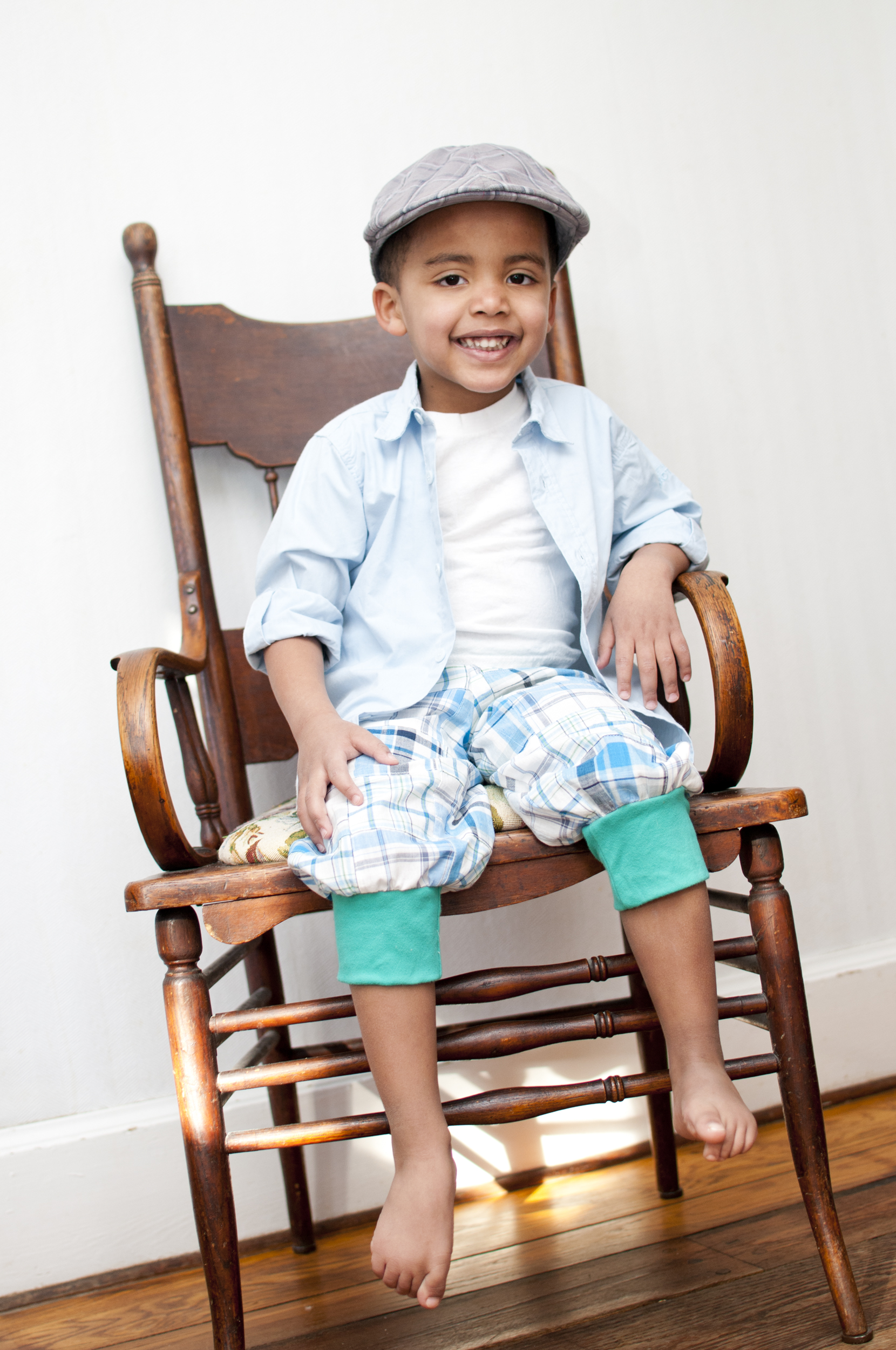 I knew this was it. I had a beautiful lacey top from my plus size days and my favorite maternity dress that where just waiting for a special project. They both landed on my cutting table (well mat on the floor actually) and the rest is history! The lace and the woven ruffle at the bottom of the maternity dress soon transformed into the cutest littlest shorts ever. The front and back panels are the lace with the woven lining. The side panels are just the lace with the bows made out of the woven. Add the bias tape hem and the contrast band for a super cute finish.