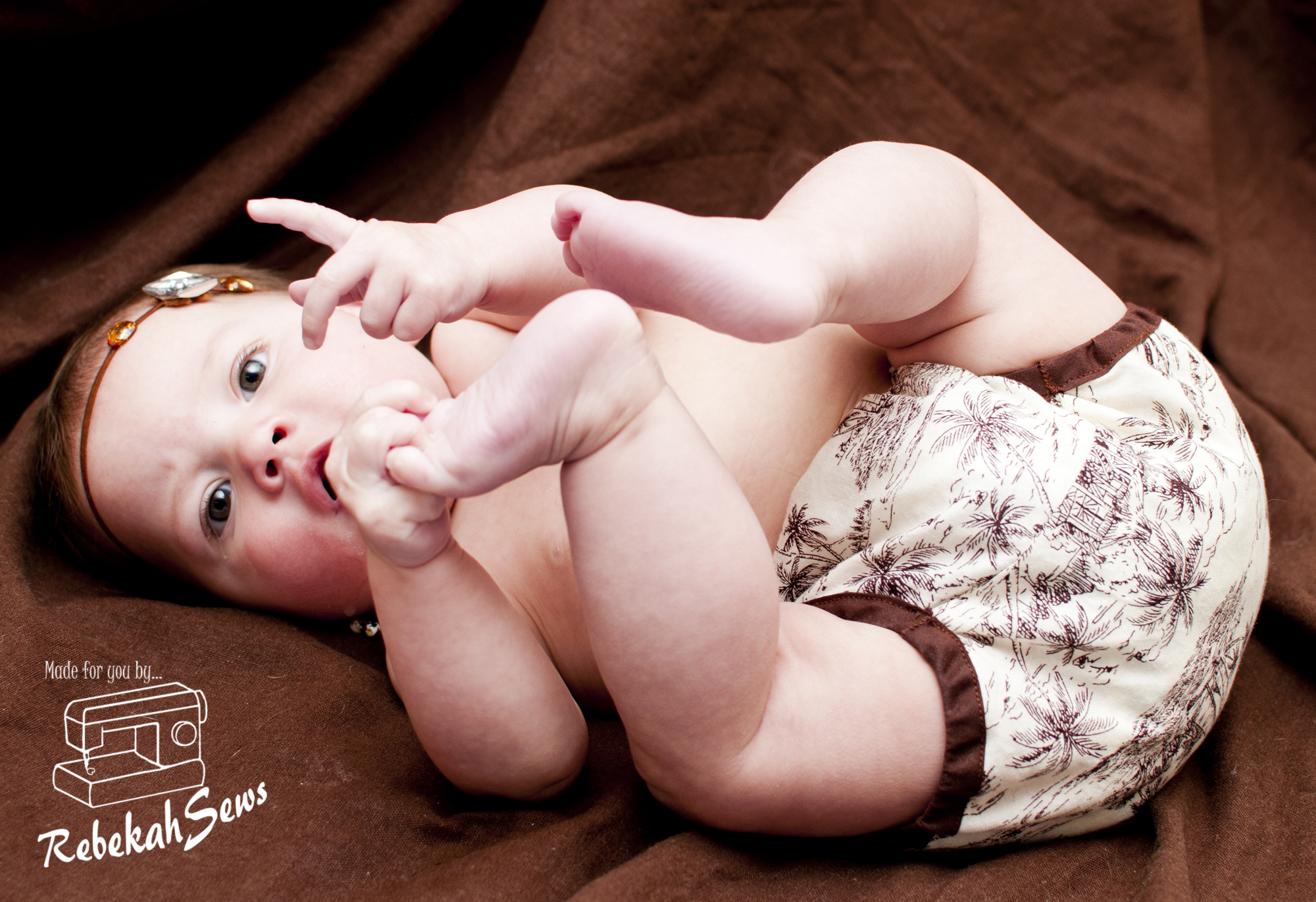 The first pattern I tested was the Boys Diaper Cover. Now don’t let the name fool you. It’s not just for boys. It is sized 0months to 2T. It has elastic in the waist and legs. There is also plenty of room for the cute cloth bums too! Now my favorite feature to the pattern is the bias hem on the legs. Love incorporating more than one fabric, of course that is up to you, but I think it gives it that extra POP!