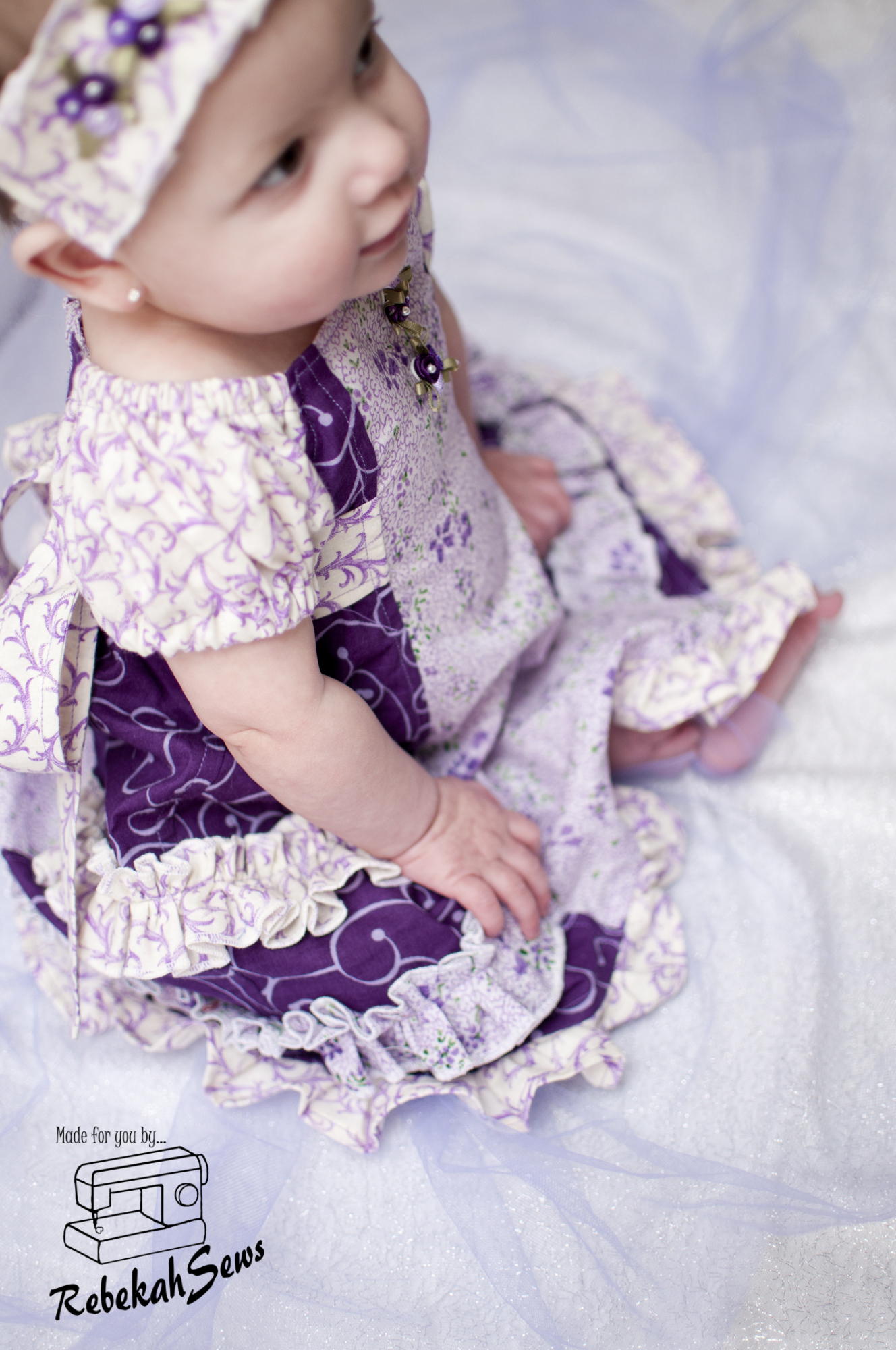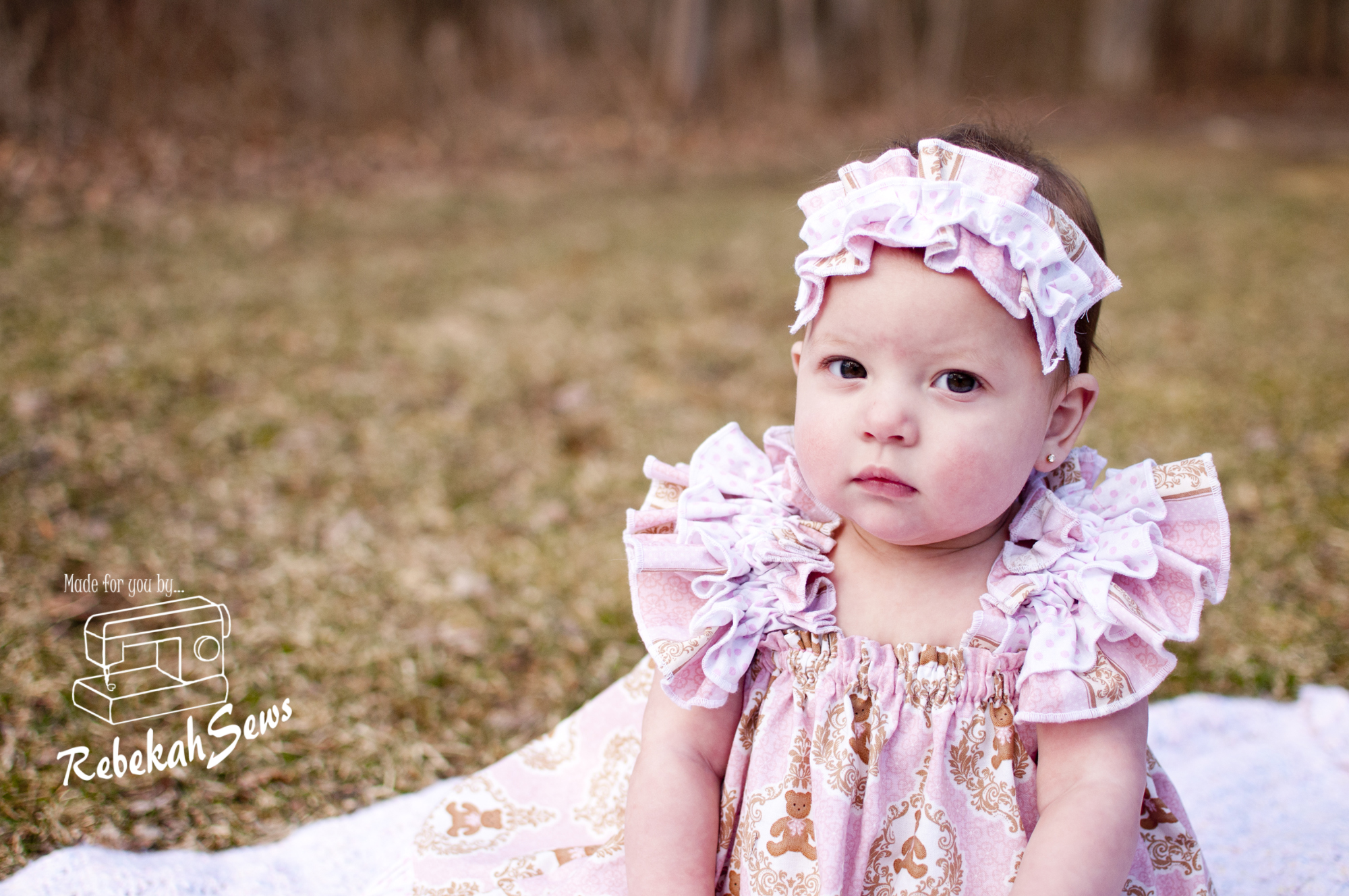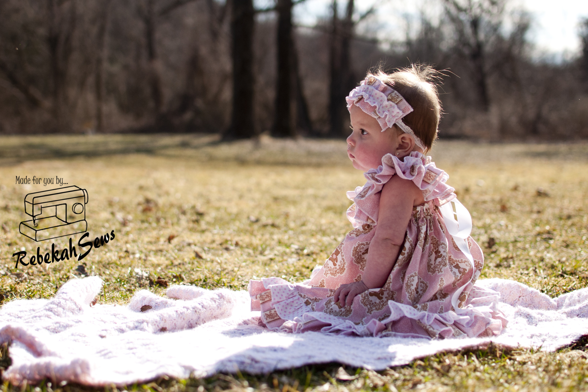 pattern size ranges in 0months thru 12girls so all your little girls sizes are covered. And this really looks just amazing on babies and bigger girls alike. Now looking at the photos you may be thinking, do I really have time for this??? Um, YES!!! Despite all the ruffles, it really doesn’t take long to sew. The longest part is doing all the rolled hems! Second longest part is putting the ruffles on the bottom hem on but even that didn’t take too long. I think this dress took about 3hrs from start to finish and that included interruptions from the kids.
