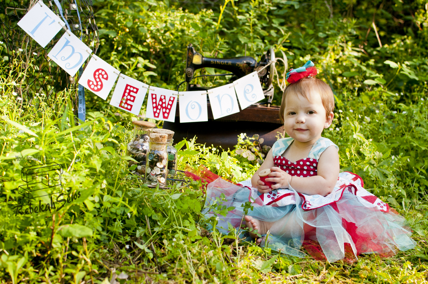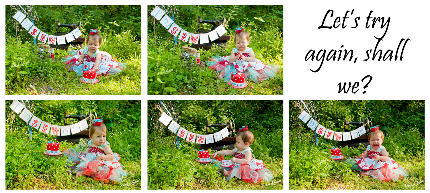 Now I had visions of Ruth digging into her cake and getting those magical cake smash photos. I even made sure that she had cake several days before in order to make sure she liked it, which she did. However the cake smash didn’t quite go as planned. She loved the “spool” of thread on top. But then she touched the frosting…it apparently was squishy, made her dirty, and she just wasn’t having any of that!!