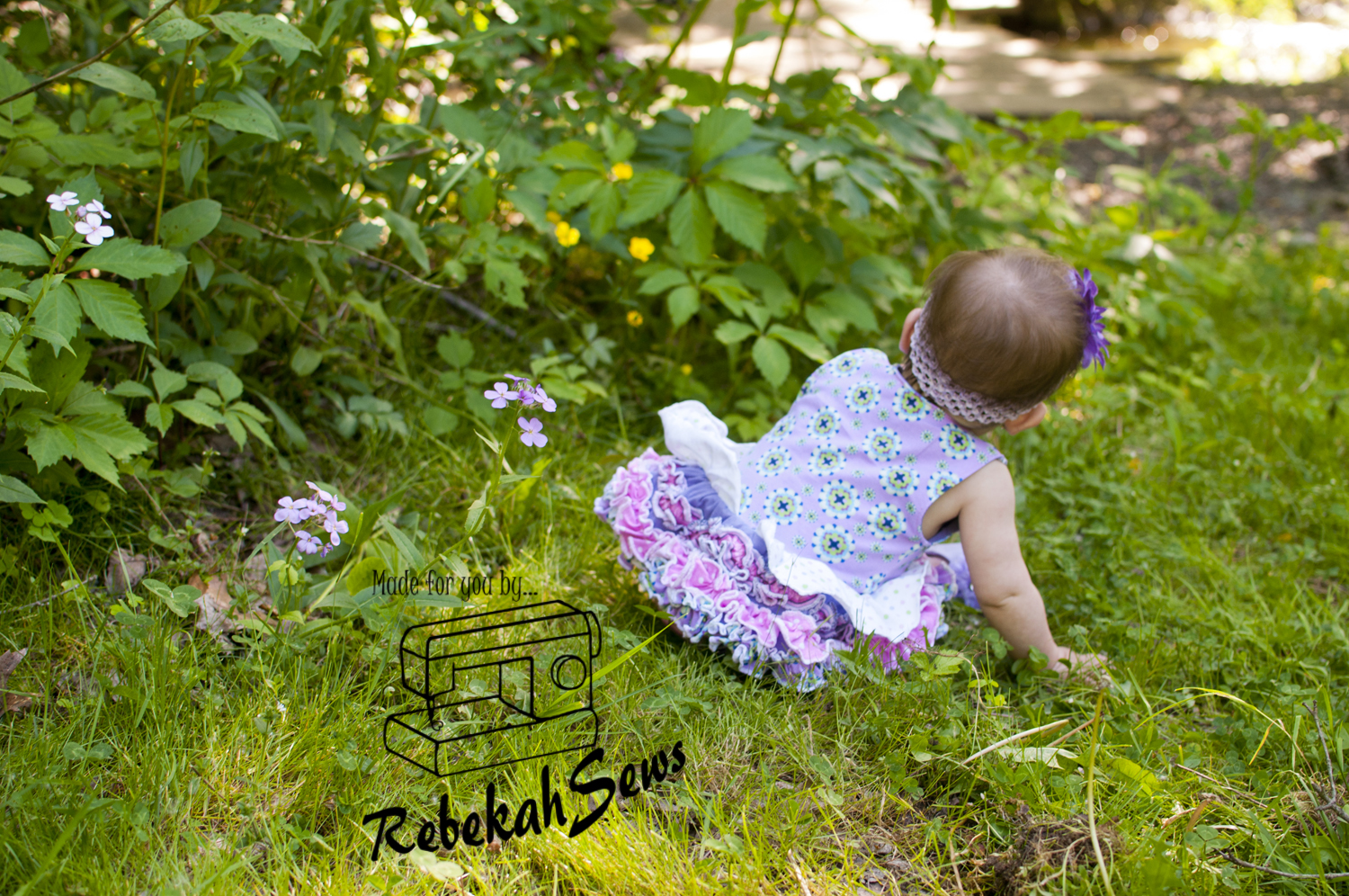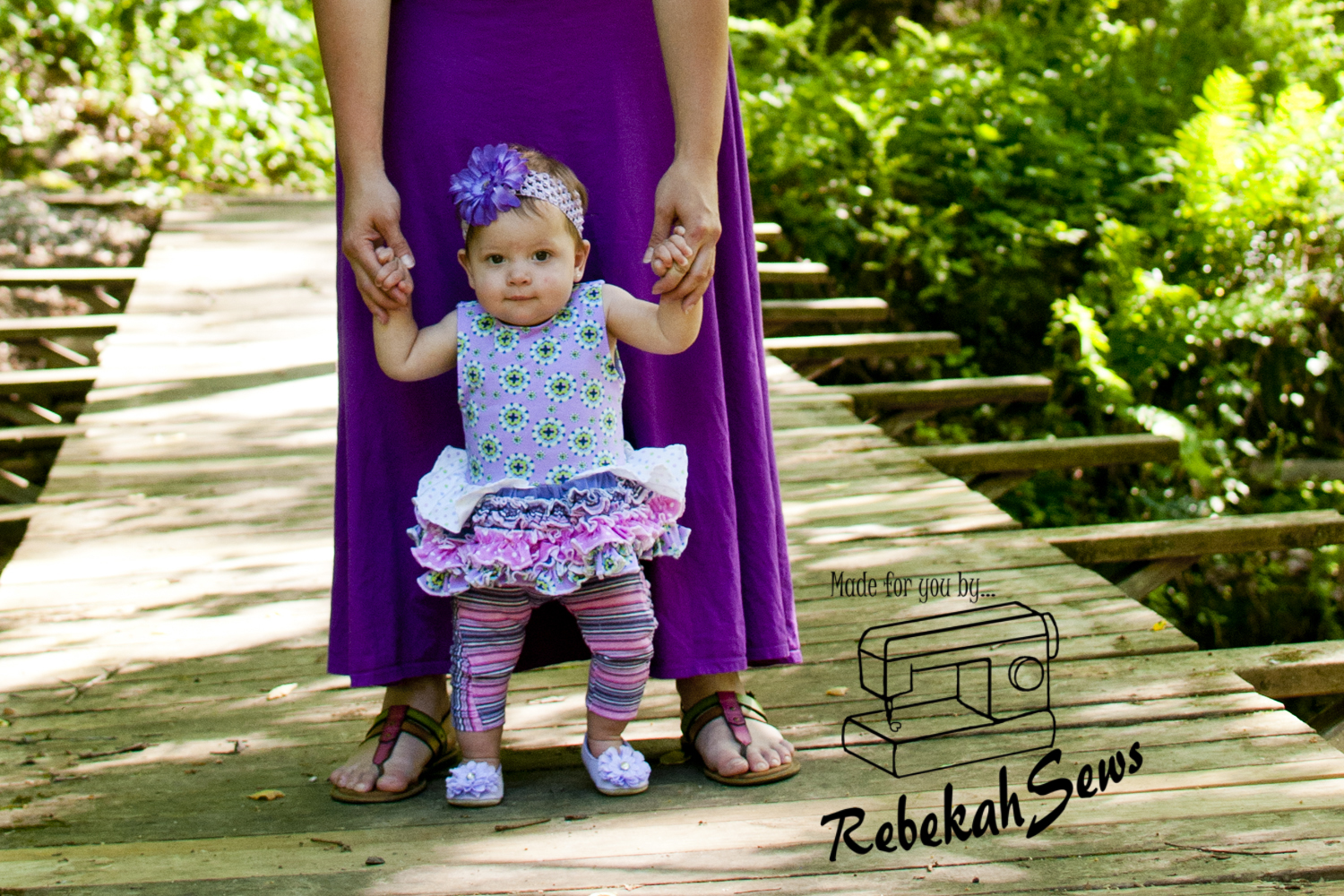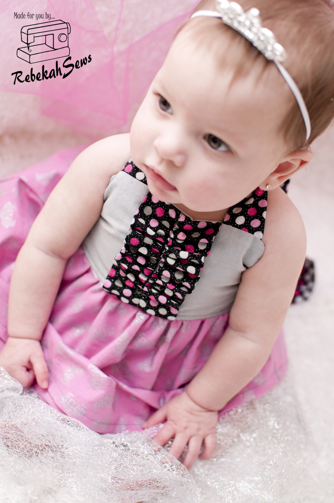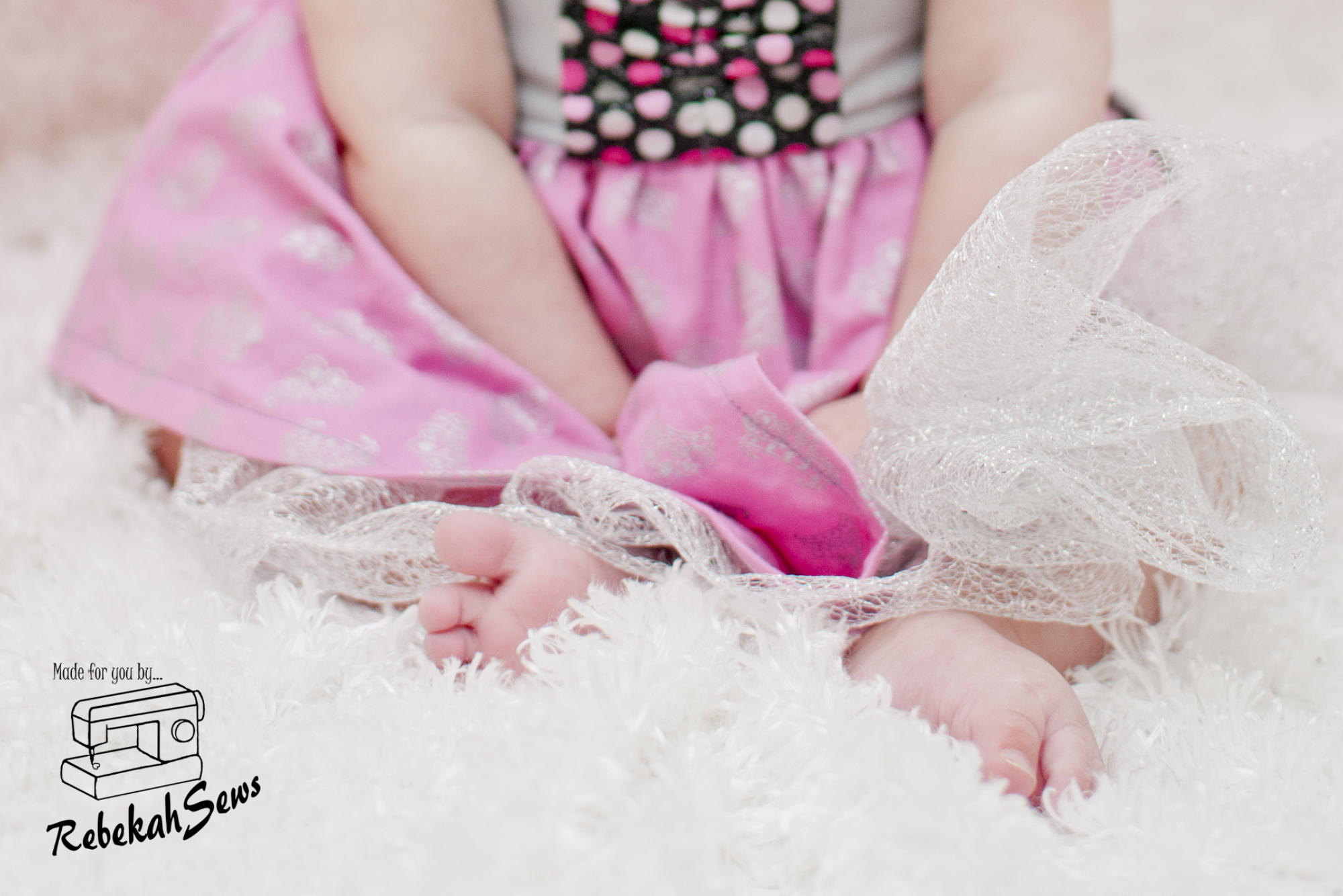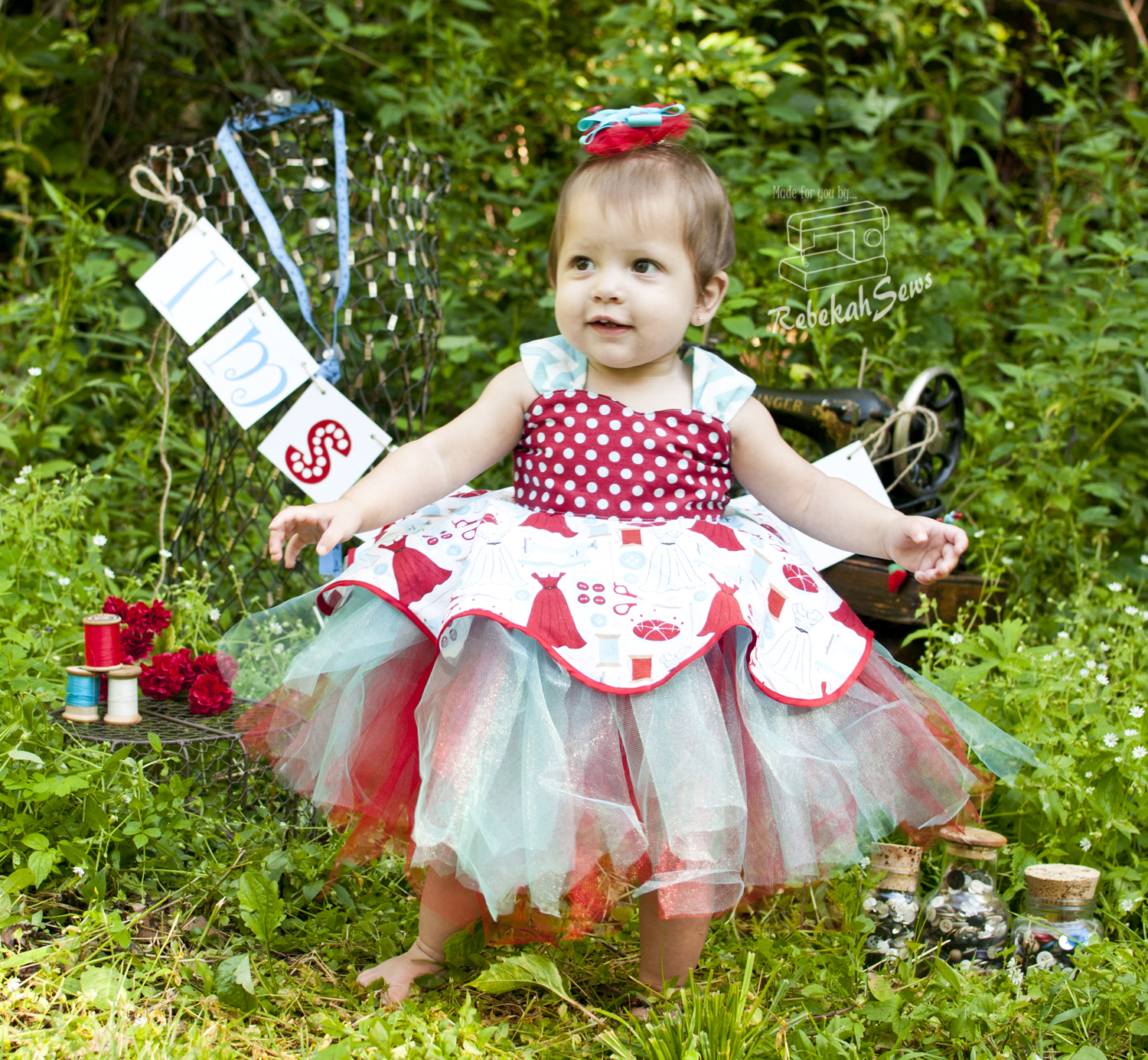 When Elizabeth agreed to be a part of the giveaway too I was so excited to dive right in. This dress comes in sizes 0-3mo- 8yrs and even includes the doll size. It features a sweetheart neckline, slightly gathers straps, a scalloped circle overskirt, and circle underskirt. It buttons in the back but you don’t have to do any buttonholes on this one!! There are also four different hem finishes in the pattern.
