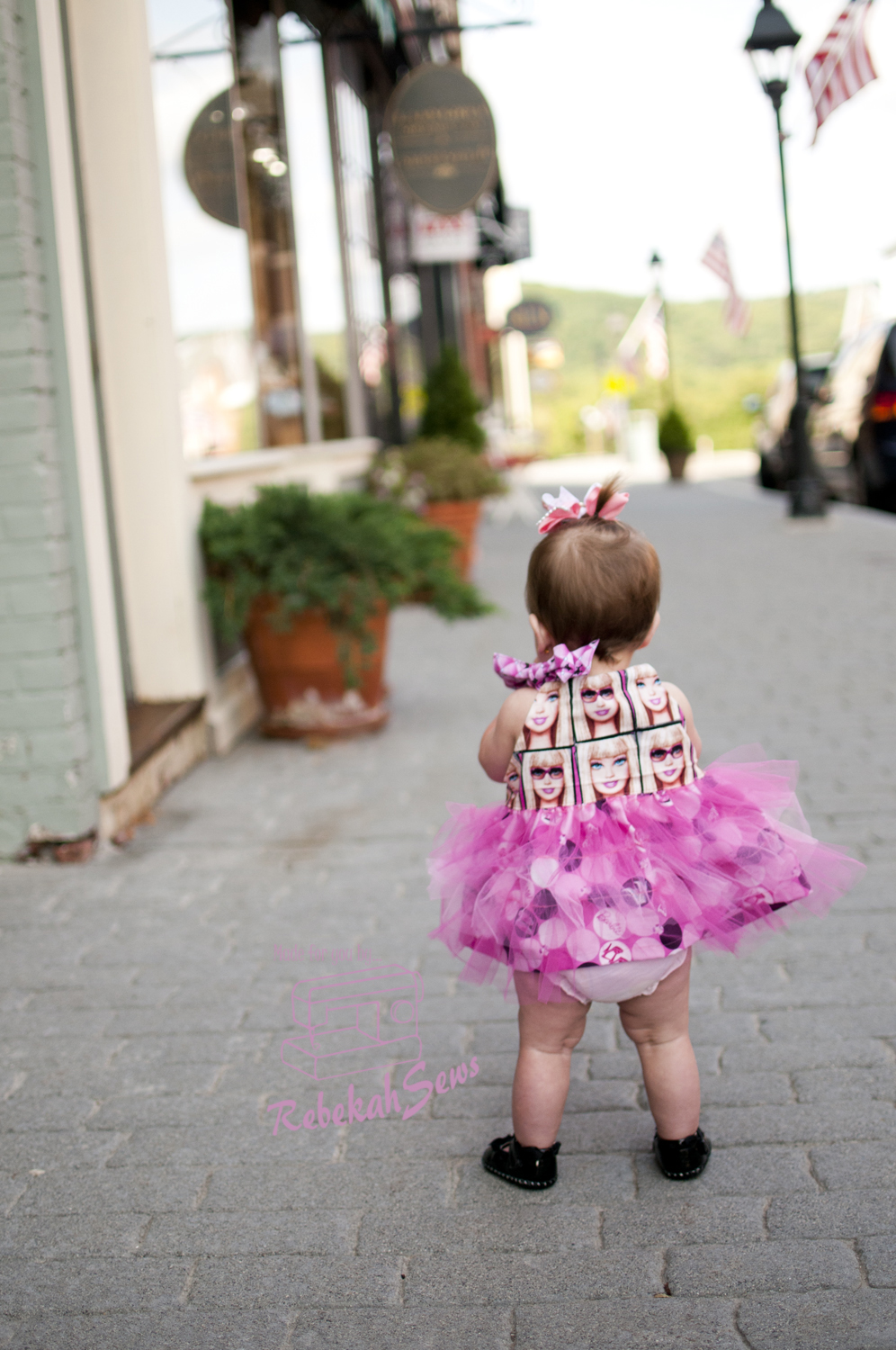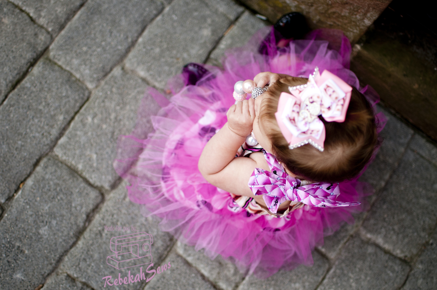 I choose the bias finish for mine. I just love the fact that this pattern has a circle skirt, especially the scalloped overskirt. Now for Ruth’s dress I left off the underskirt and instead put a no sew tutu underneath to give it a very full princess look. I just love it!!!!