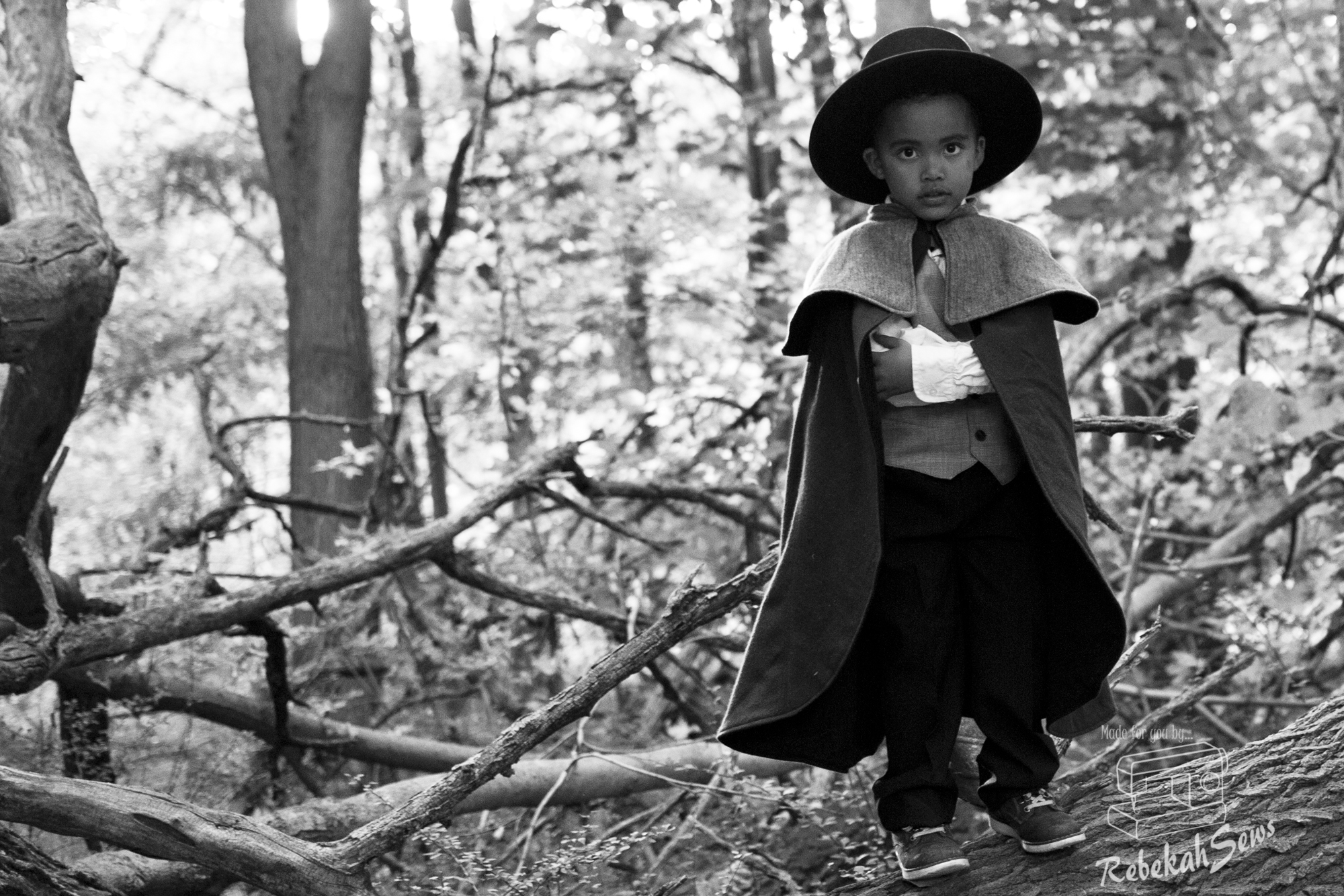 Let the boys have some fun! Wizards, super heroes, magicians, detectives…anything really! Whether it be for Halloween or imaginative play, you can’t go wrong. The traveler cape comes in five sizes 12/18M to 8/10Yrs. This is fully lined with not exposed seams at all. The shoulders are fitted in order for the lay to be just right. It is perfect for a beginner too as the tutorial walks you through every step. What I love about this too is that you can make just the longer cape, the capelet, or both! Let your imagination soar with this. As you can see my son certainly had a LOT of fun with this.