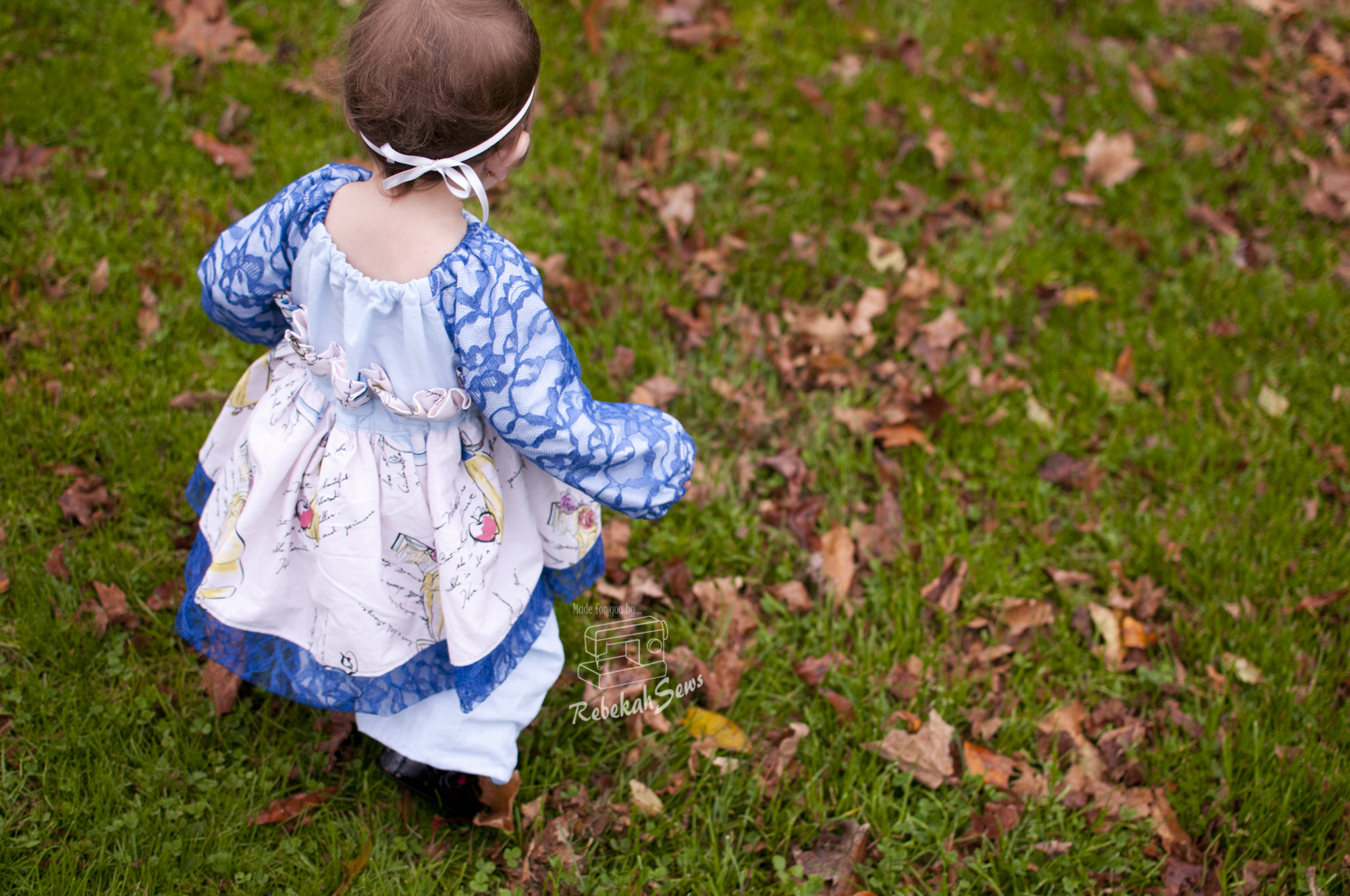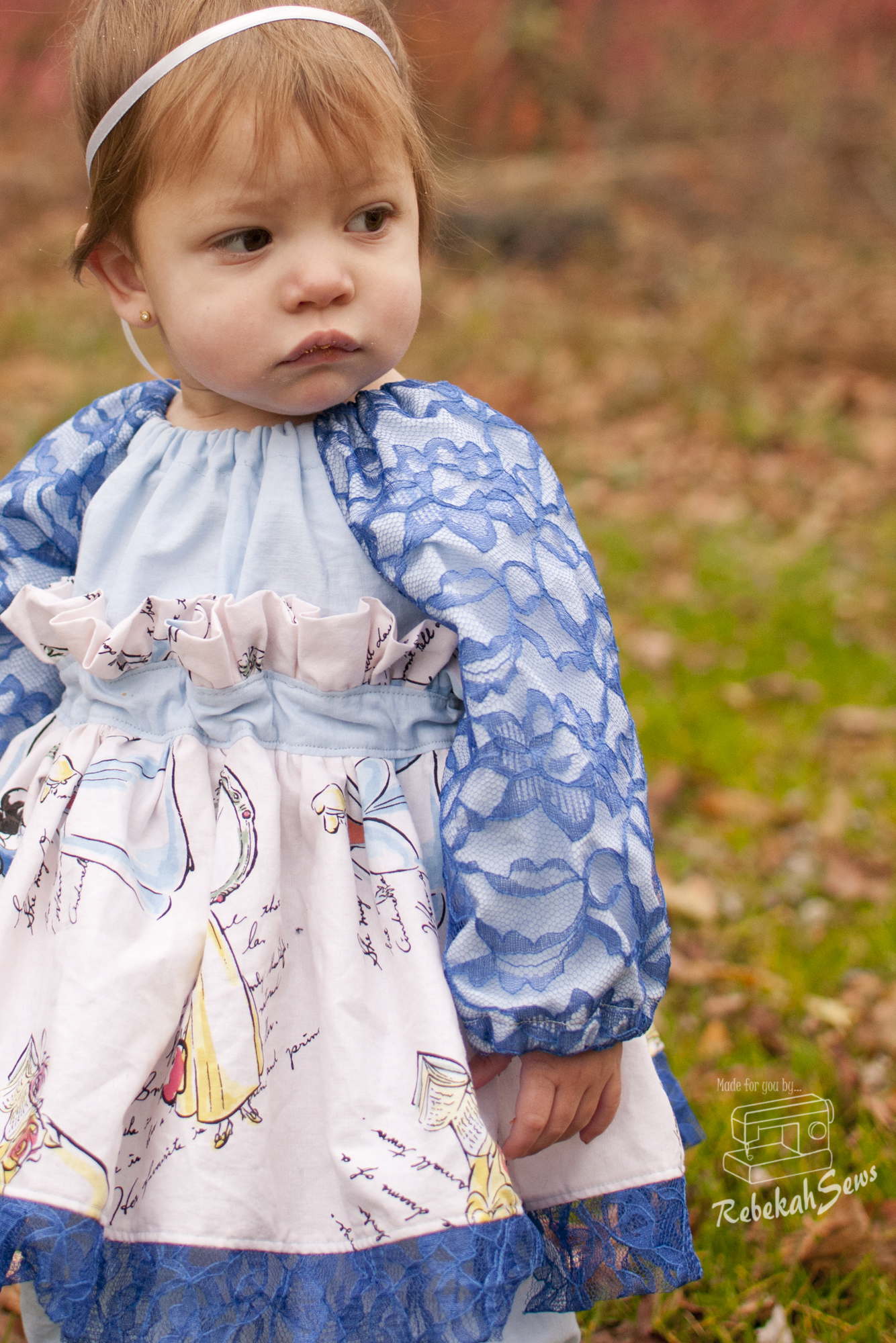 For my top I made a size 18mo. My girl is still in a 12mo size so I did need to shorten the sleeves for her. The fit is great though! Now for my panel in back I used lace. Does that really surprise you? RTC_8039You know how I love lace! I wanted to keep the scalloped hem on the lace so I took the hem allowance off the panel pattern piece prior to cutting. When hemming the rest of the top it then lined up perfectly! The only other change I made was topstitching the seams of the panel to the side piece. I just love this!