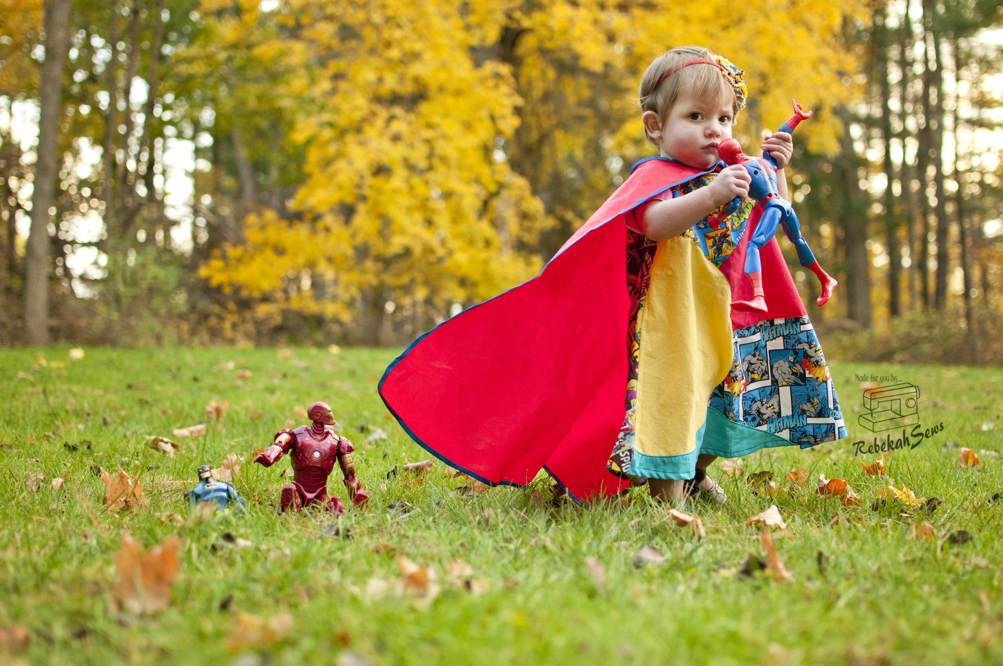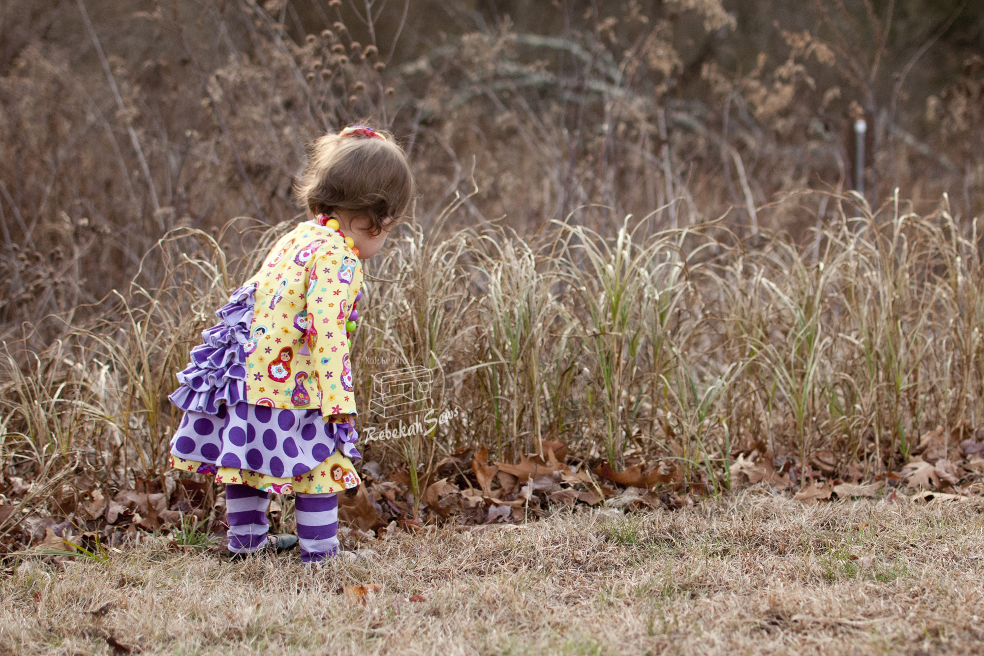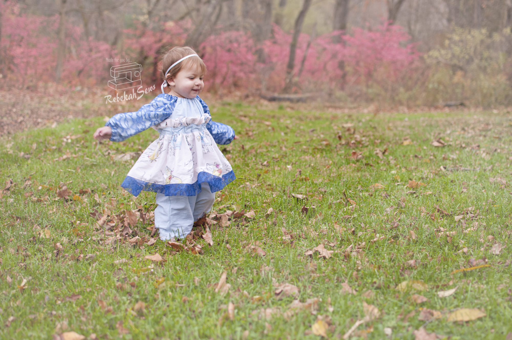 I did the woven version in a size 12mo for my girl. Now my peanut is at the lower end of a size 12mo. RTC_9503Her chest is 18.5 inches and she is 29 1/4″ tall. Yup, definitely a peanut! Even though this is a tad big on her I love the fit. This dress being a real wrap dress also gives it a little more ability to be adjustable so it will fit her now and later! The tutorial features illustrations and photos which give it clarity. However if you get stuck, just head on over to the Facebook group for help! It is a fast sew once it’s cut out. Yes, there are quite a few pages to print and cut- 39 pages for the woven version and 50 pages for the knit version. Those are needed though for that unique skirt. To make printing and taping a bit easier though, this pattern offers a layer feature so you only have to print the size you need! How is that for convenience? I think a confident-advanced beginner could sew this pattern up with amazing results!