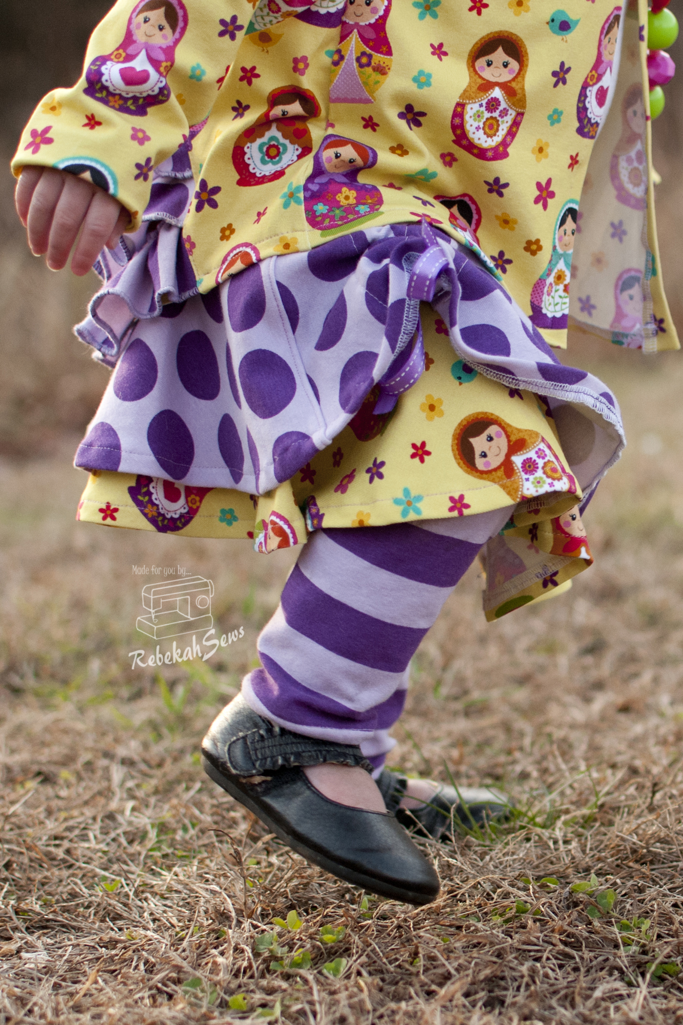 Now I paired baby girls night shirtRTC_8743 (I know it looks like the gown option but it is the shirt option. Baby girl is just short!) with the Jocelyn leggings for a complete pj set! When baby girl sleeps she wiggles and squirms and often times sticks her bottom up in the air which leaves her legs uncovered and cold. Therefore I like to make sure she stays nice and warm and RTC_8972what better solution than adding the leggings to match? Ranging in sizes NB-18 tween you again get a huge amount of sizes! There is also a women’s version too! One thing I love about this pattern is the yoga waistband. No elastic here!!